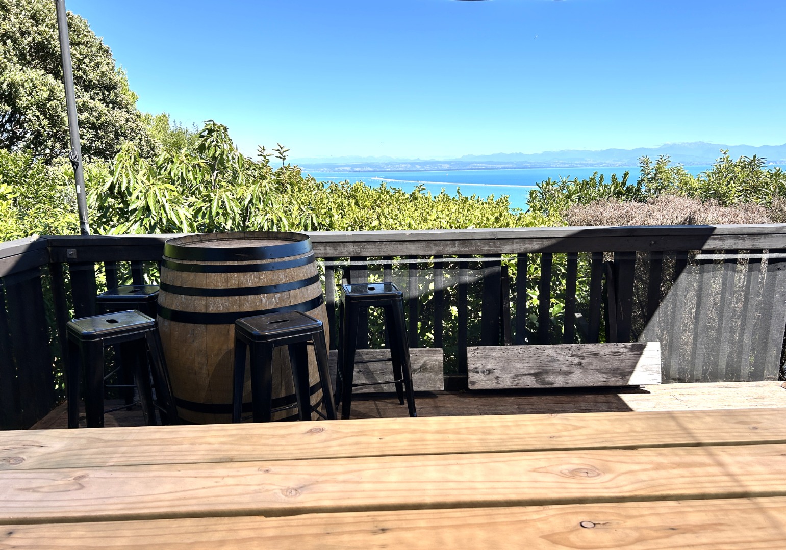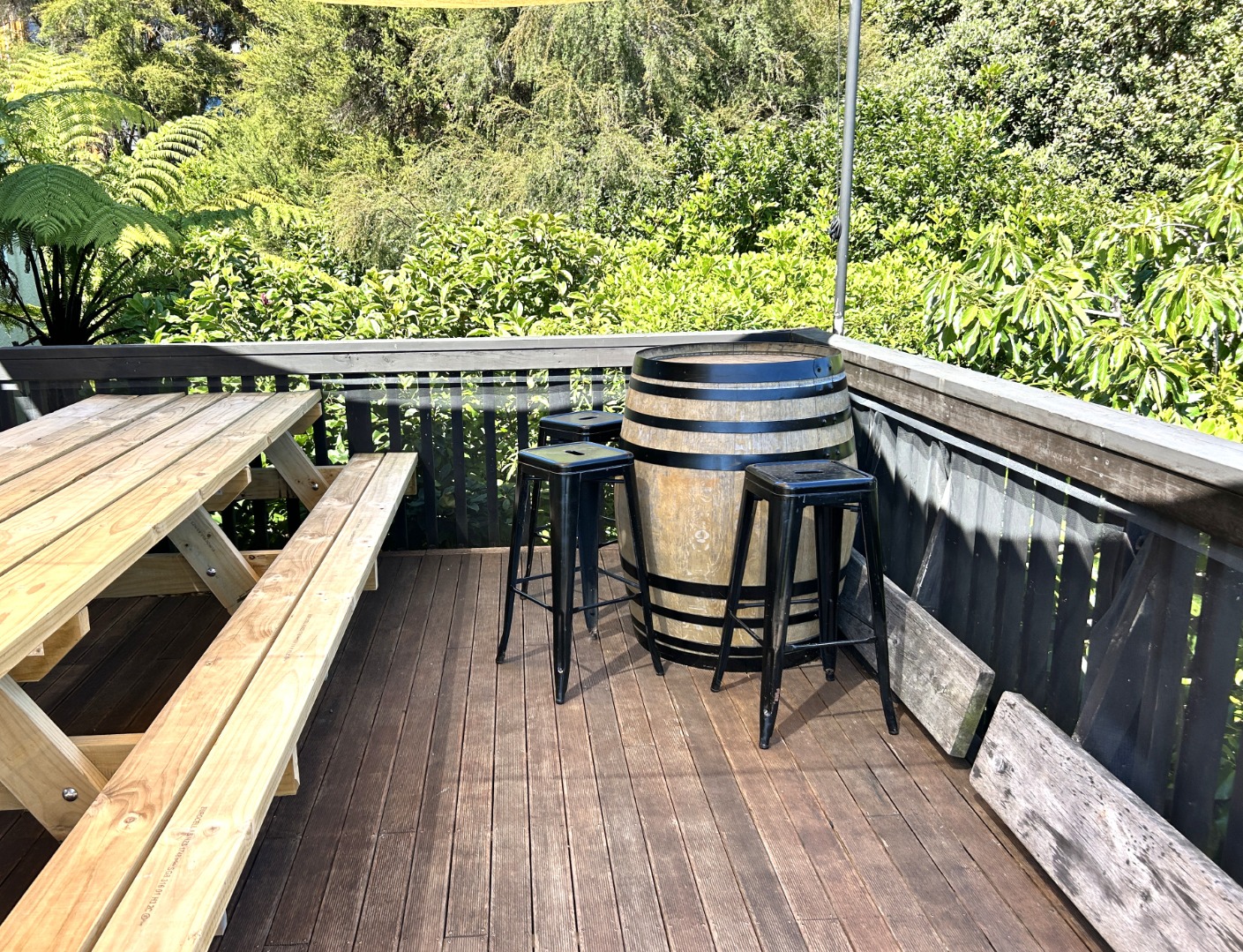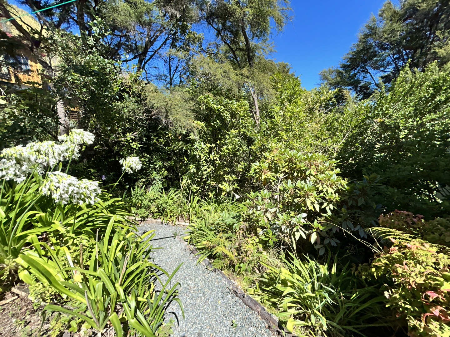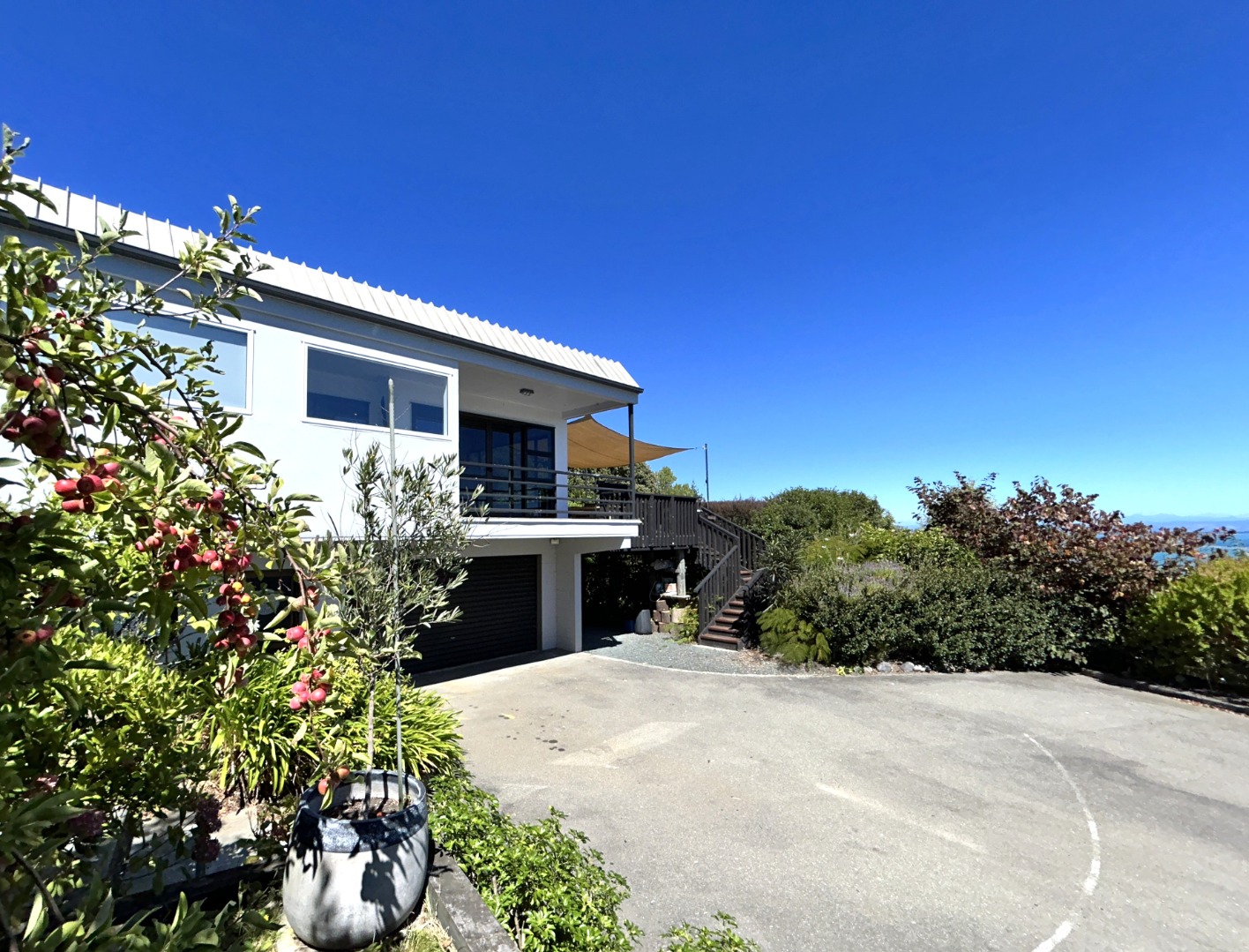 - Flat garden borders and small lawn with wider established native bush surrounds
