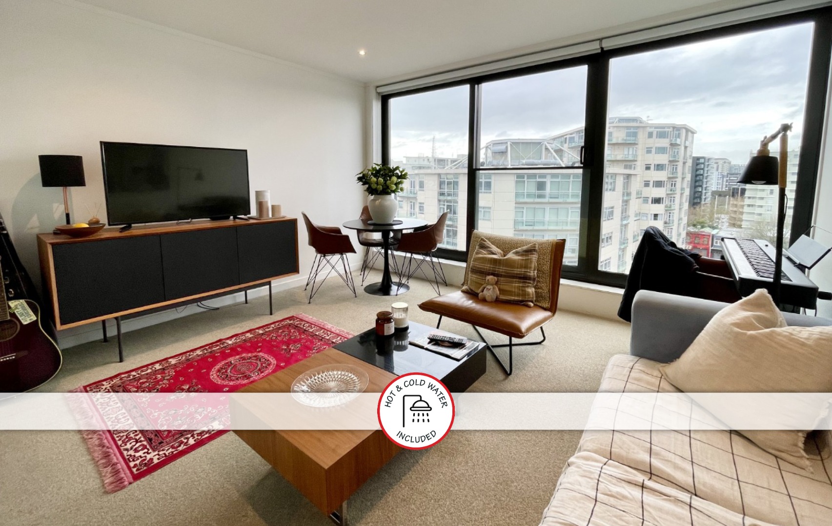 - Hot and cold water plus a storage locker included in the rent.