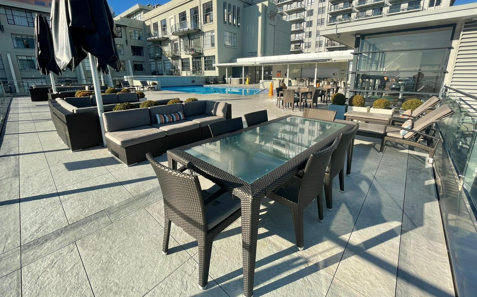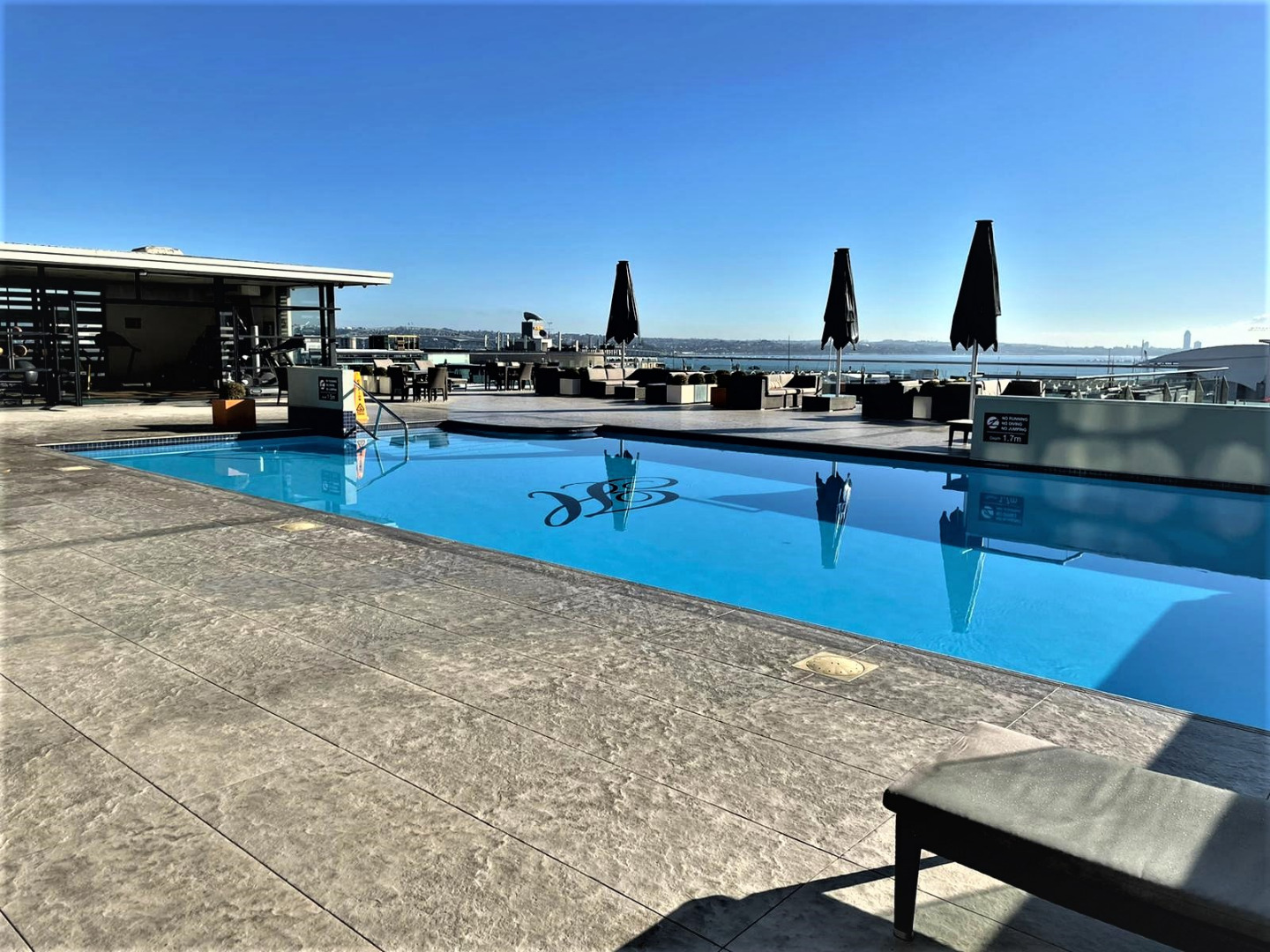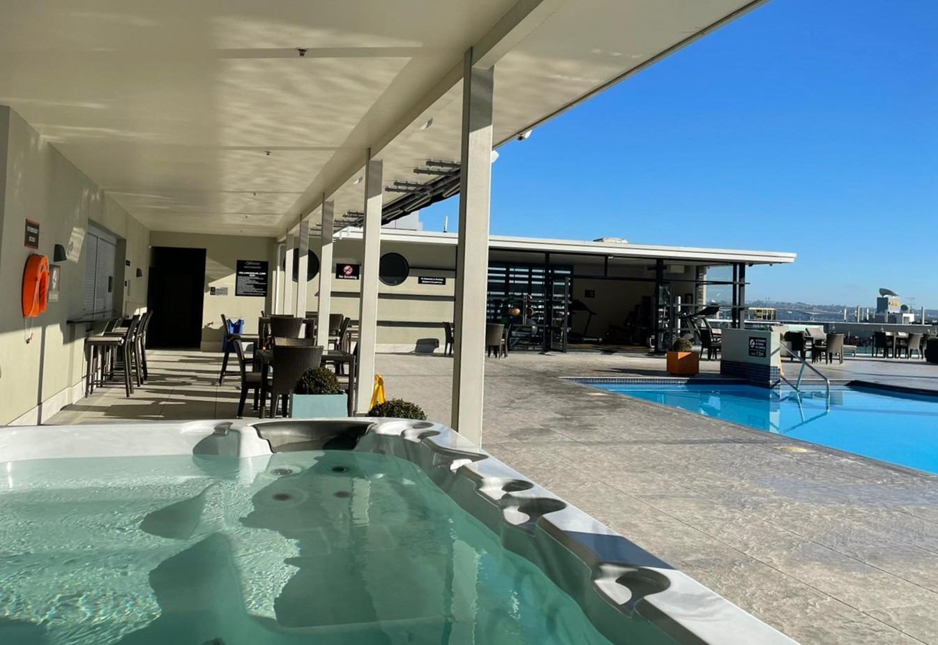 - Rooftop pool, spa, and gym with stunning city views
