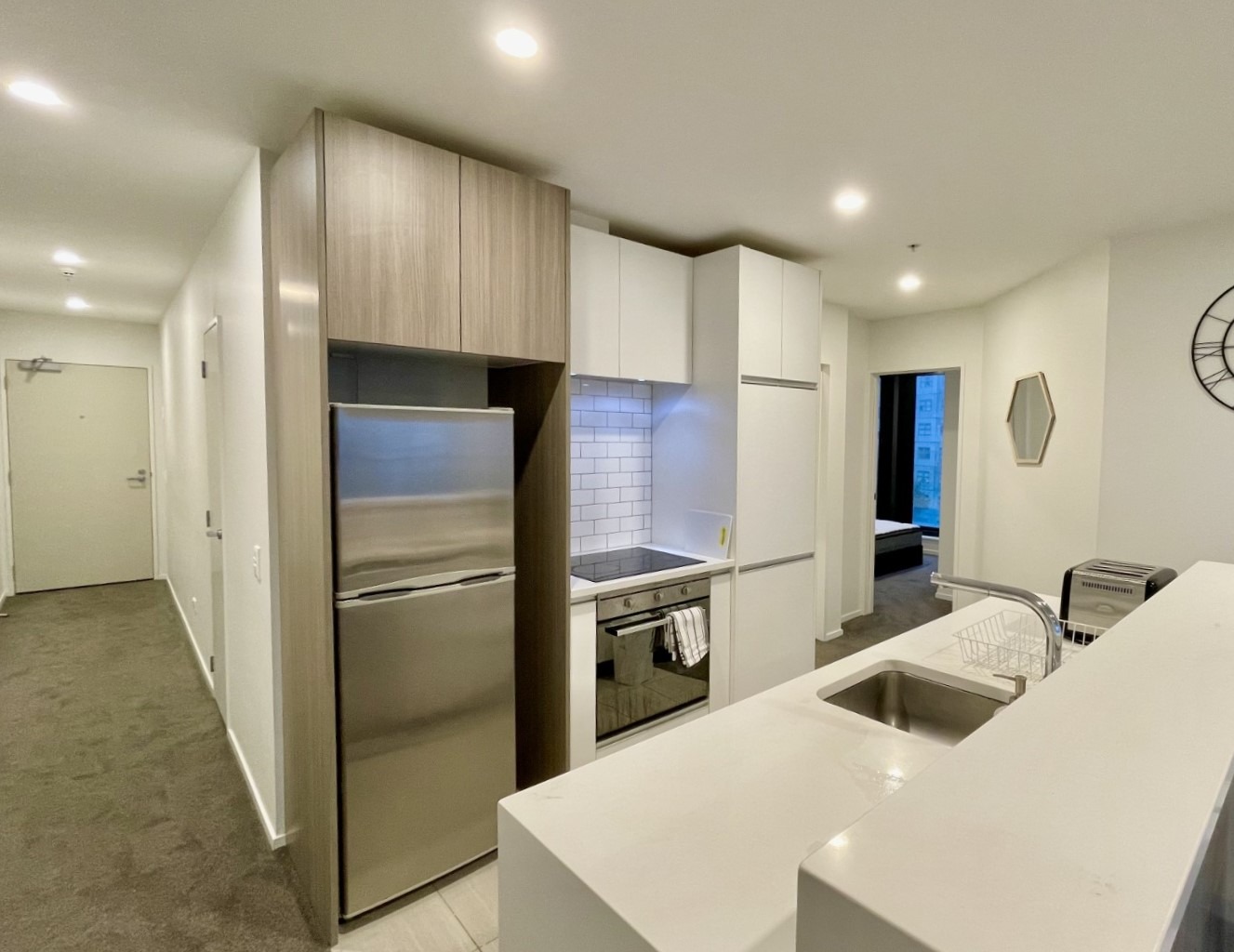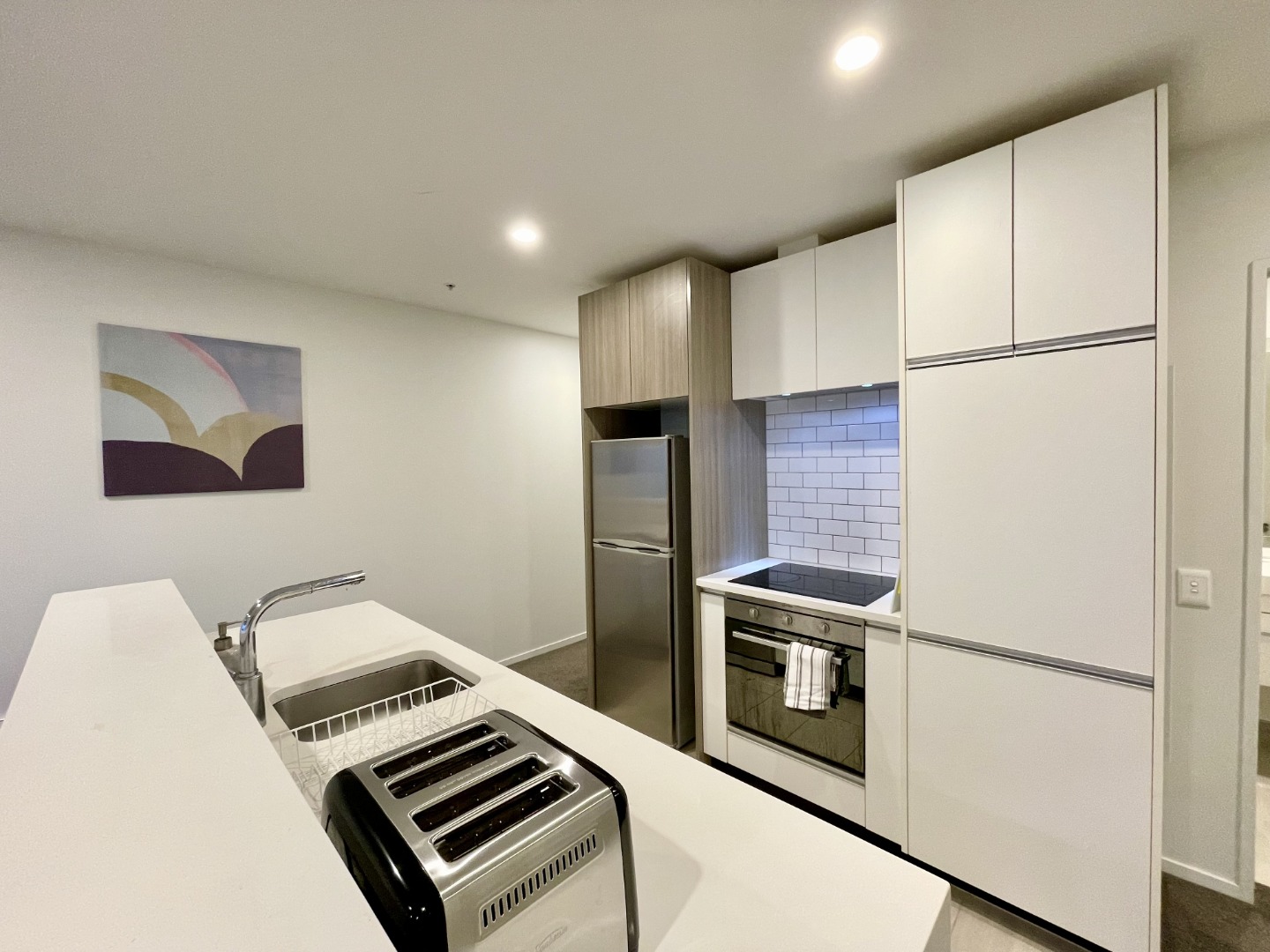 - Modern open-plan kitchen with composite stone bench-tops