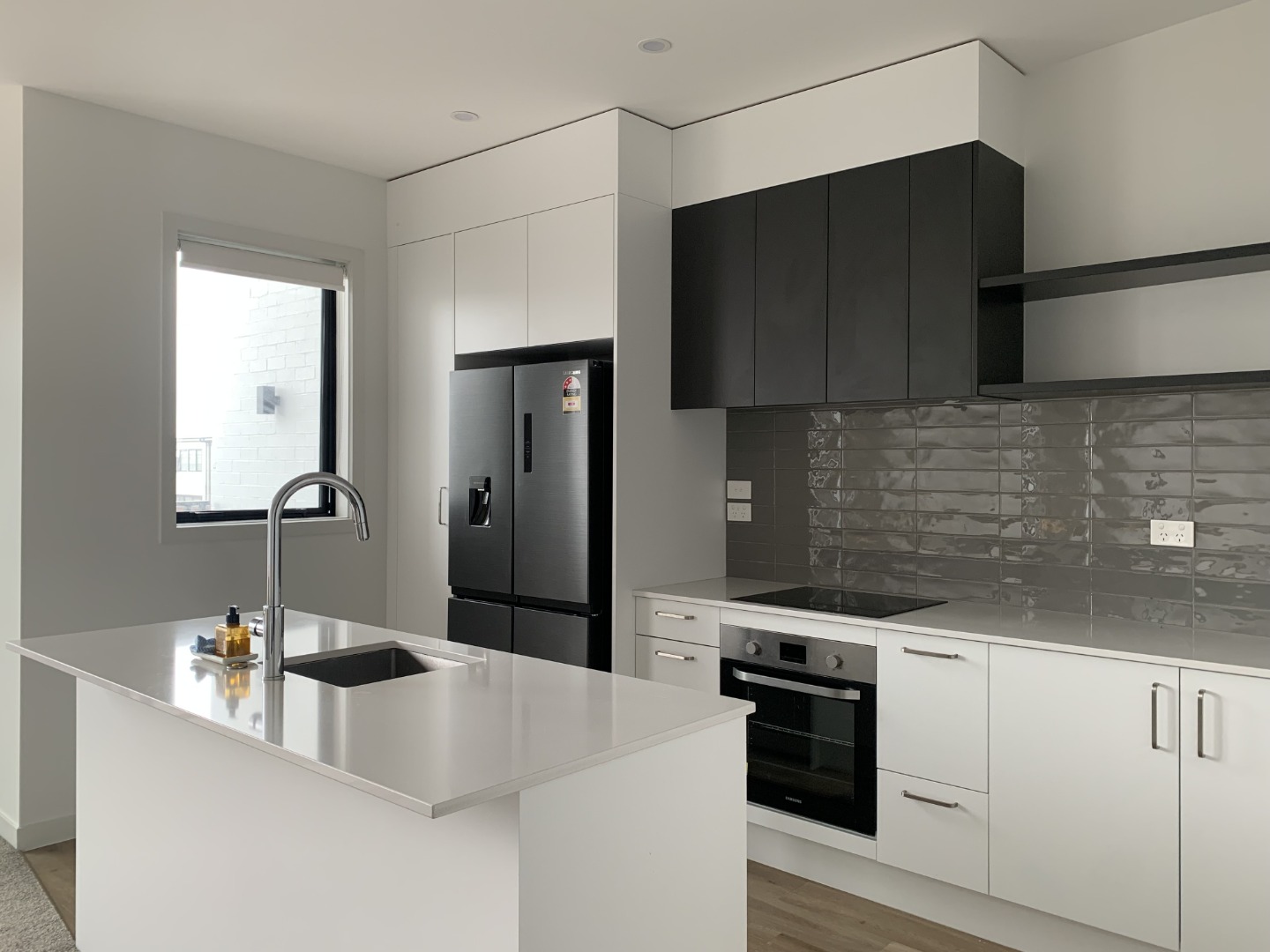With a island bench, ergonomic cabinetry & a dashing splashback, the kitchen shares its ingenuity with the lounge, dining & deck, nailing that cool-casual vibe in urban living.